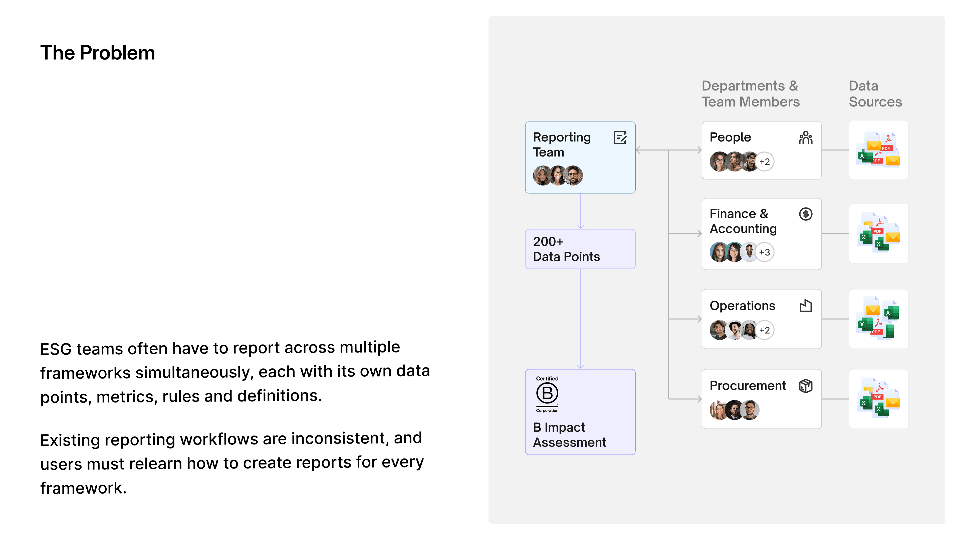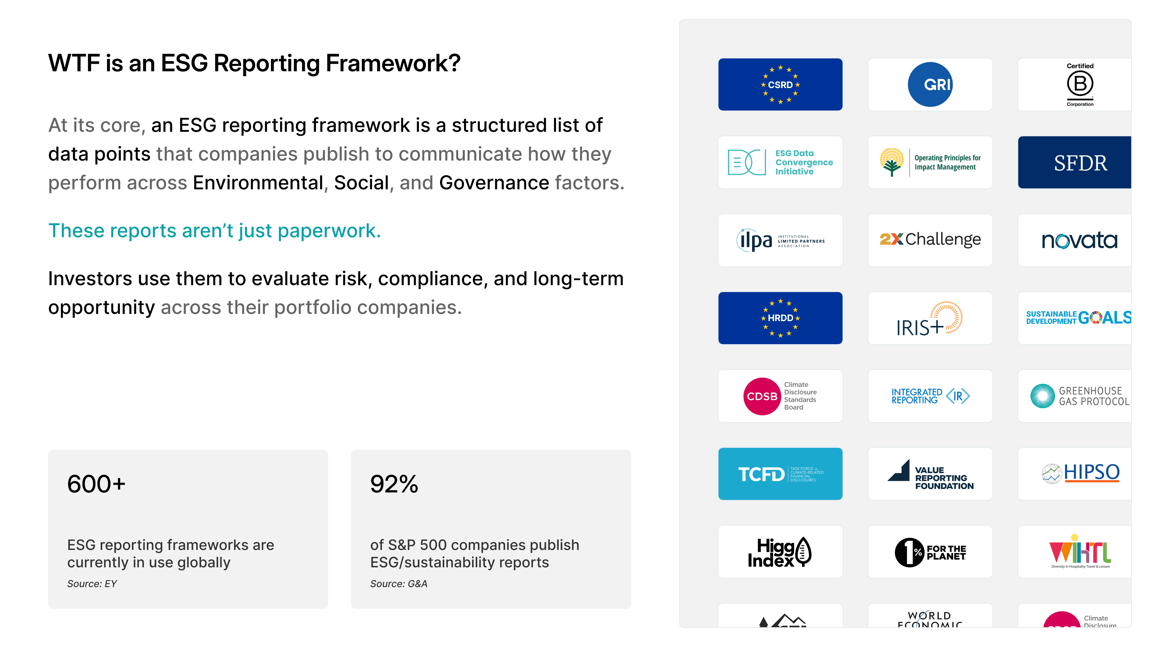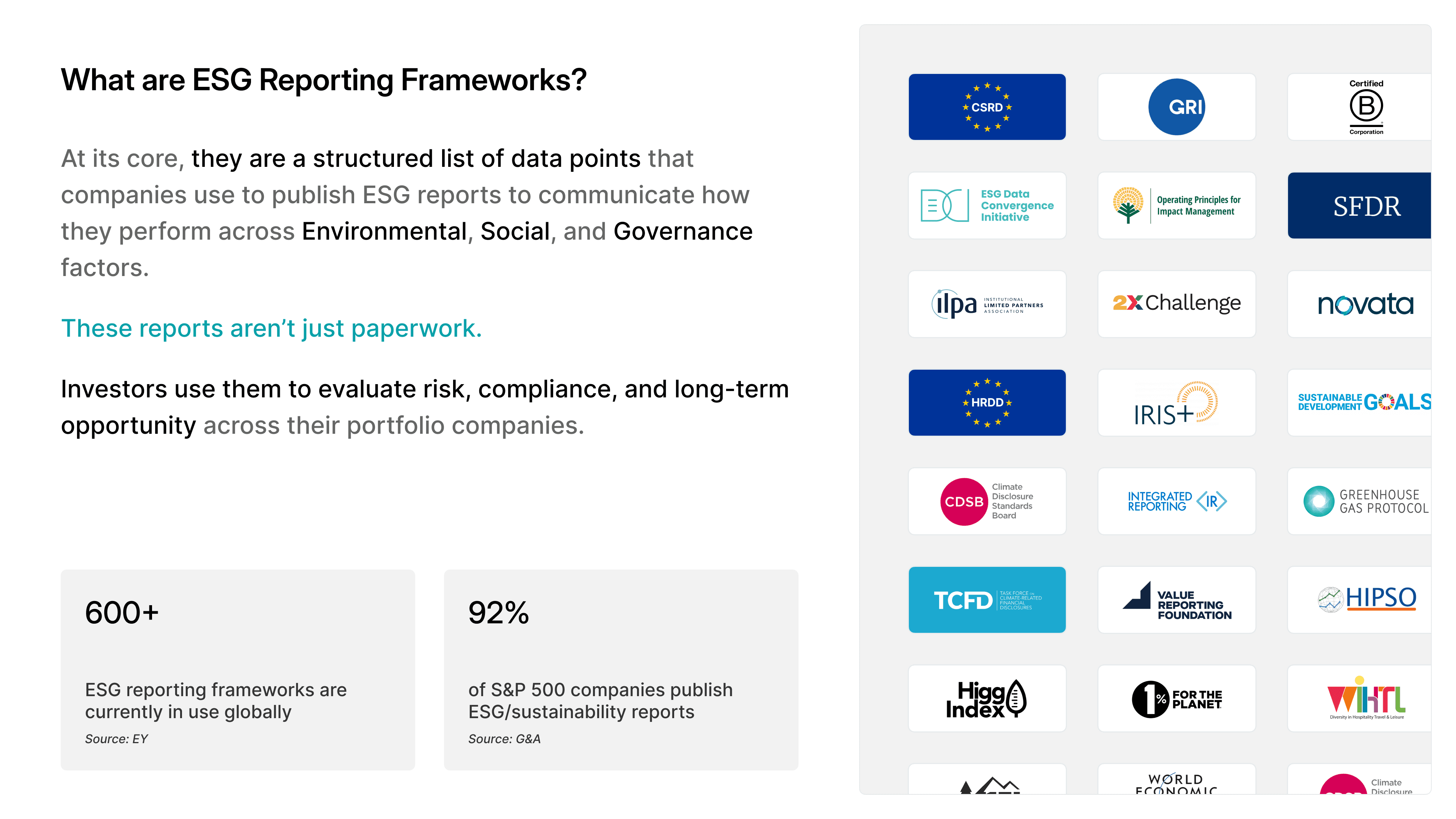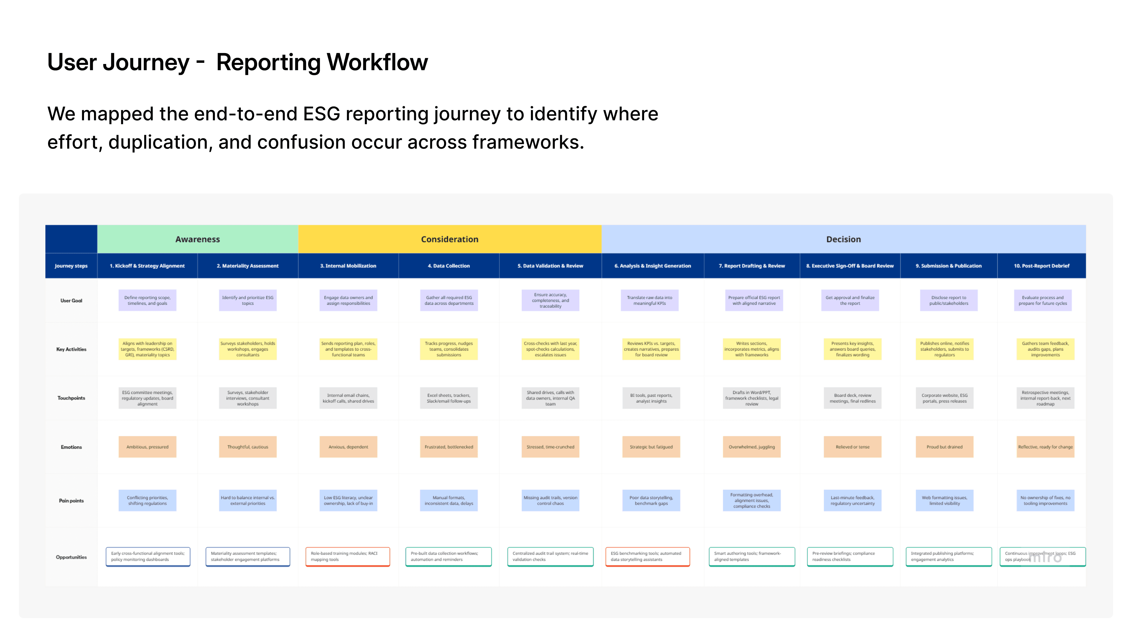 This case study is about designing a unified, scalable UX that can support over 600+ ESG reporting frameworks, each with different data models, rules, and regulatory requirements.